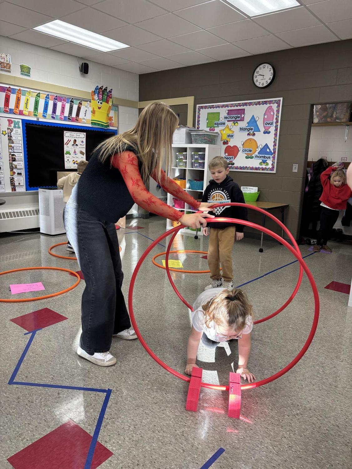 FACS students planned fun physical activities for Mrs. Sasker's kindergartners.